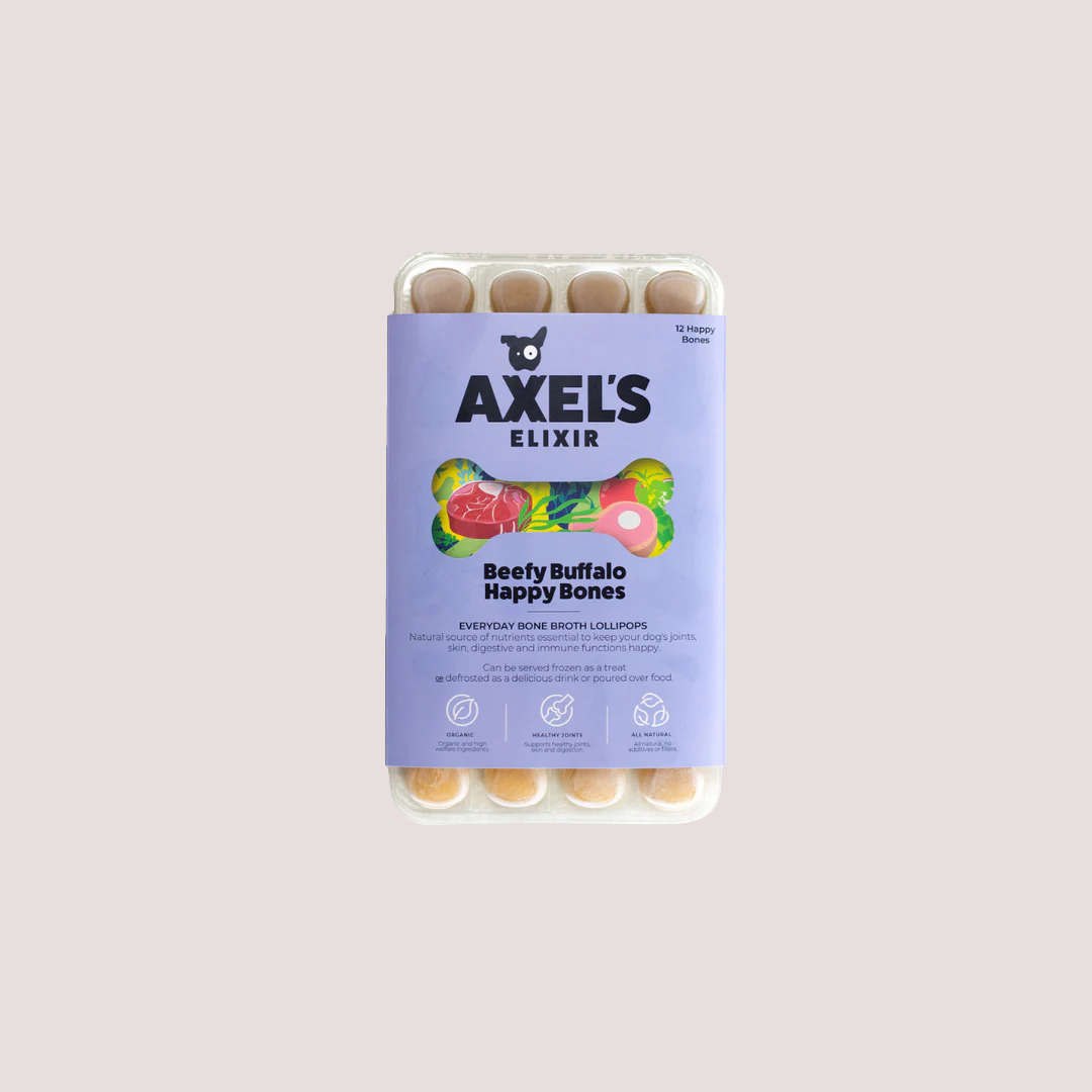 Buffalo bones, beef bones, apple cider vinegar with mother, dried parsley, dried kelp, dried nettle and natural sea algae extract.