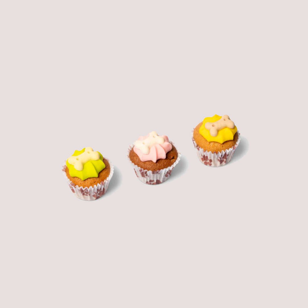 Made with carefully selected ingredients including cereals, milk derivatives and dried egg, each muffin is topped with decorative icing and finished with carob powder for a chocolate-style taste that is safe for dogs. The soft texture makes them easy to break into smaller pieces, perfect for sharing or using as a special reward.