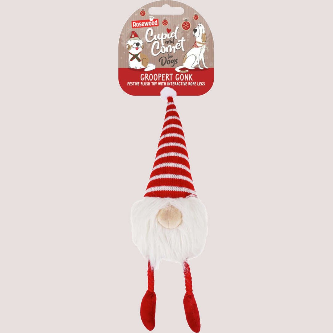 The Rosewood Cupid & Comet Groopert Gonk dog toy is a whimsical, festive friend for your dog this Christmas. With its soft plush body and charming gonk design, it’s perfect for cuddling as well as playtime, adding novelty and cheer to the holiday season.