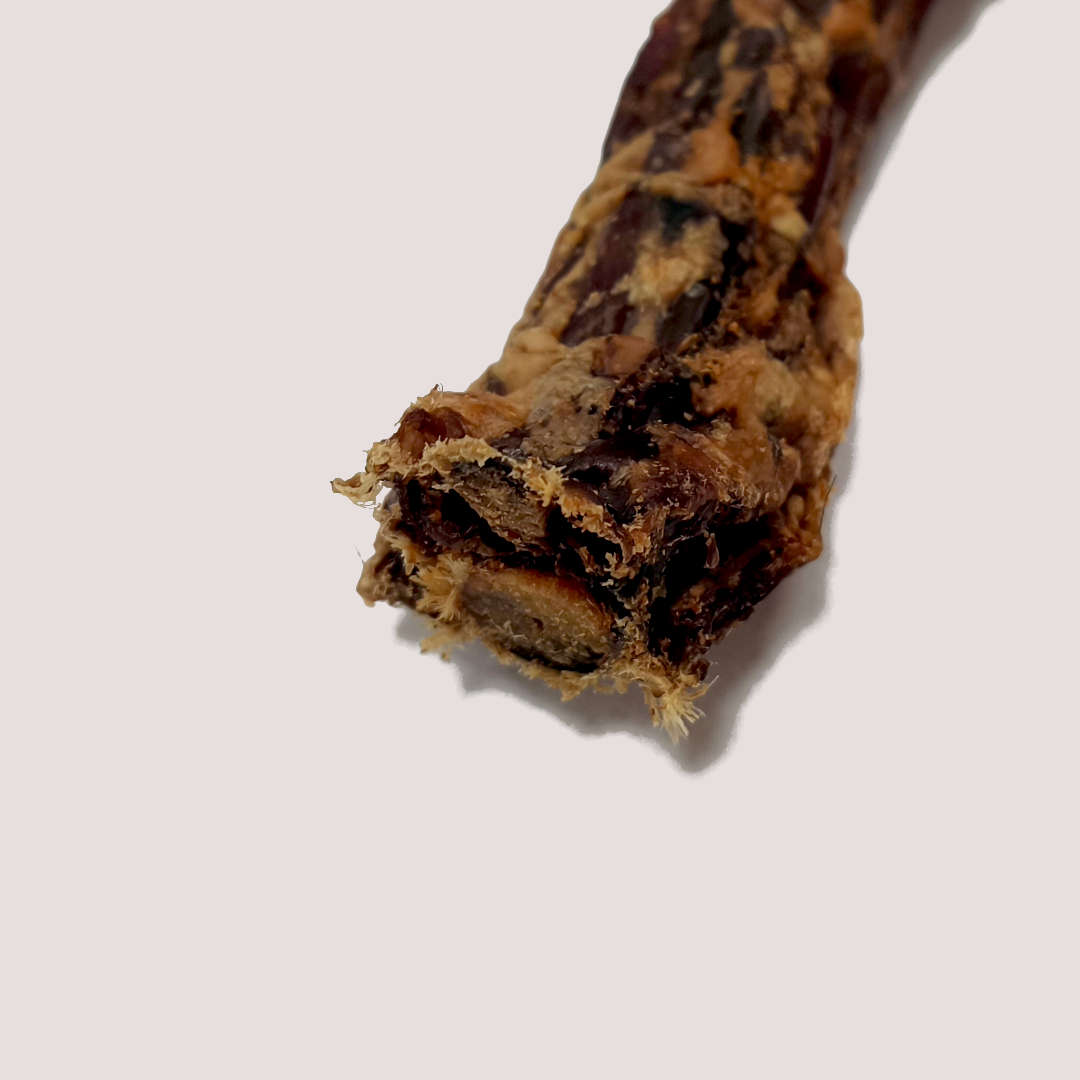 Carefully air-dried to preserve flavour and nutrients, this chew delivers a rich, meaty taste that dogs enjoy. The tough structure encourages chewing, which can help support dental health by reducing plaque build-up.