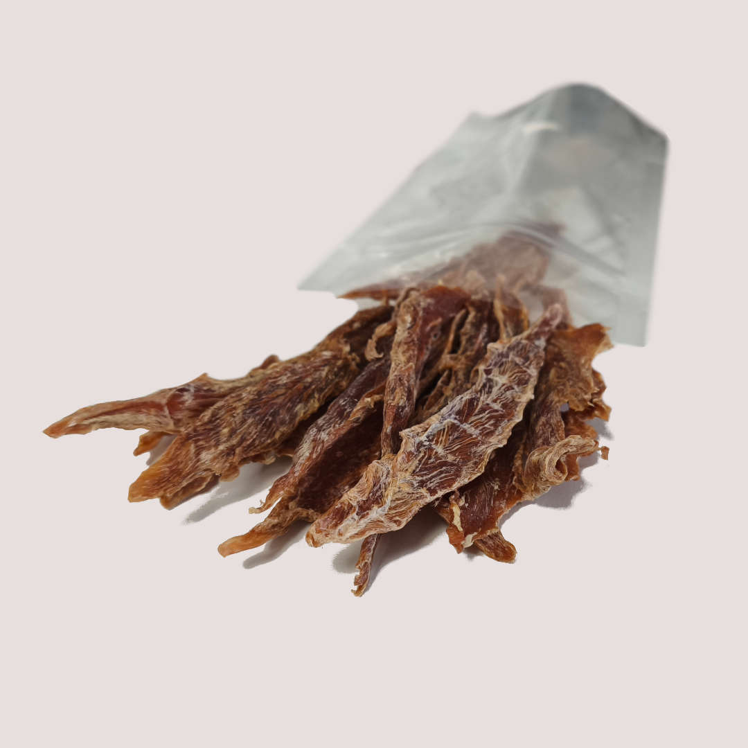 Dried Duck Breast Fillet is a naturally nourishing treat crafted from 100% premium duck breast and gently air-dried to lock in flavour, texture and essential nutrients. This slow air-drying process yields a chewy, satisfying fillet that promotes natural chewing behaviour while preserving the meat’s nutritional integrity. Duck is a novel protein source, making it an excellent option for pets with sensitivities to more common meats such as chicken or beef. Naturally rich in thiamin, niacin and iron, duck supports metabolism, immune health and overall vitality. Free from grains, fillers and artificial additives, this wholesome fillet can be served whole, torn into smaller pieces, or used for enrichment and training, making it a versatile and satisfying reward for dogs, cats and small animals.