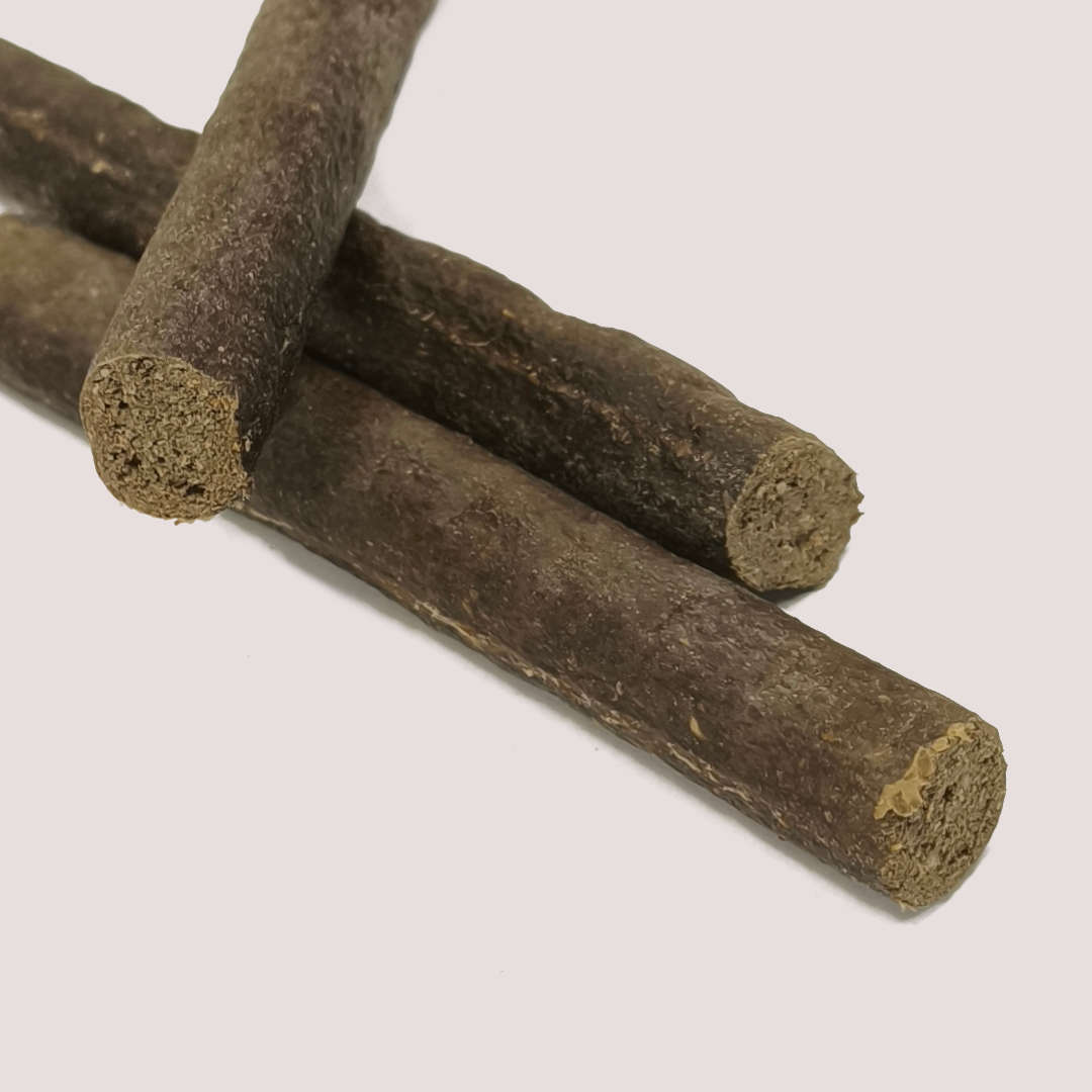 Healthy Pet Store Zebra Sticks are a unique and nutritious treat crafted from Burchell’s zebra meat, blended with natural oils, minerals, sweet potato, and smoked collagen. This novel protein source is gentle on digestion and perfect for dogs with sensitivities or those looking for something new and exciting in their diet.