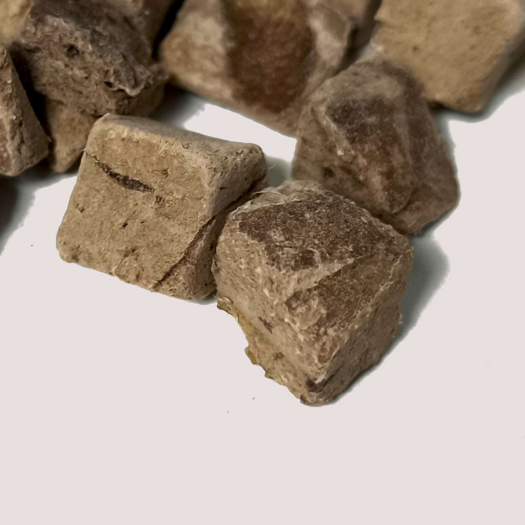 Freeze Dried Rabbit Liver 100g is a natural, single-protein treat offering exceptional nutrition for dogs and cats. Rich in iron, vitamin A and B vitamins, this lean organ meat supports healthy vision, immune resilience and daily vitality. Freeze-drying preserves the delicate nutrients without heat damage, giving your pet a highly nutritious and easily digestible treat.Made without grains, fillers or artificial preservatives, it can be used as a functional snack, a high-value reward or a meal topper. You can even rehydrate the pieces with warm water for a softer texture, making it suitable for a wide range of pets.