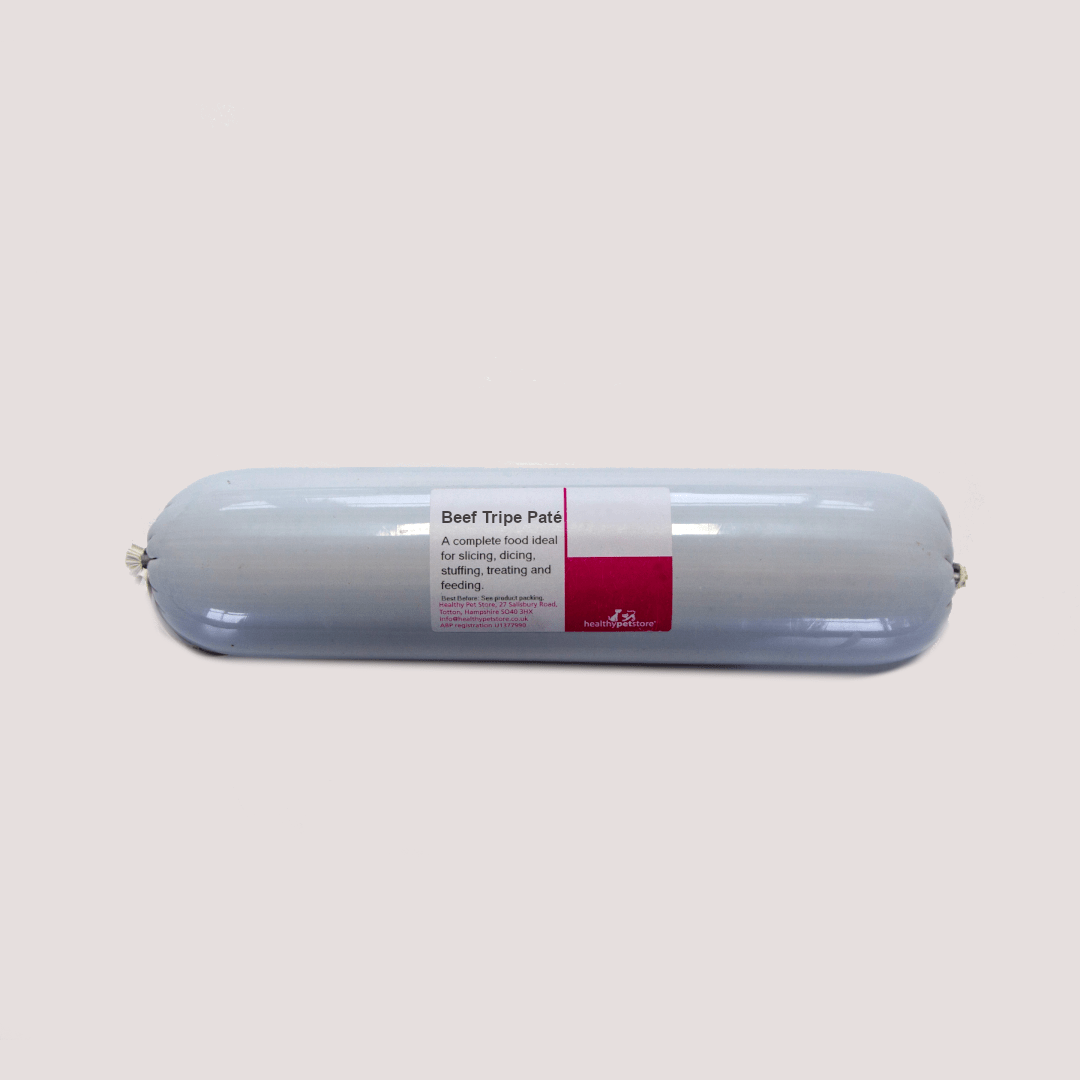 Healthy Pet Store Beef Tripe Pâté provides a delicious and nourishing meal for your dog, crafted from high-quality beef tripe. This complete and balanced wet food is rich in essential nutrients and offers a natural source of digestive enzymes, helping to support gut health and overall well-being.