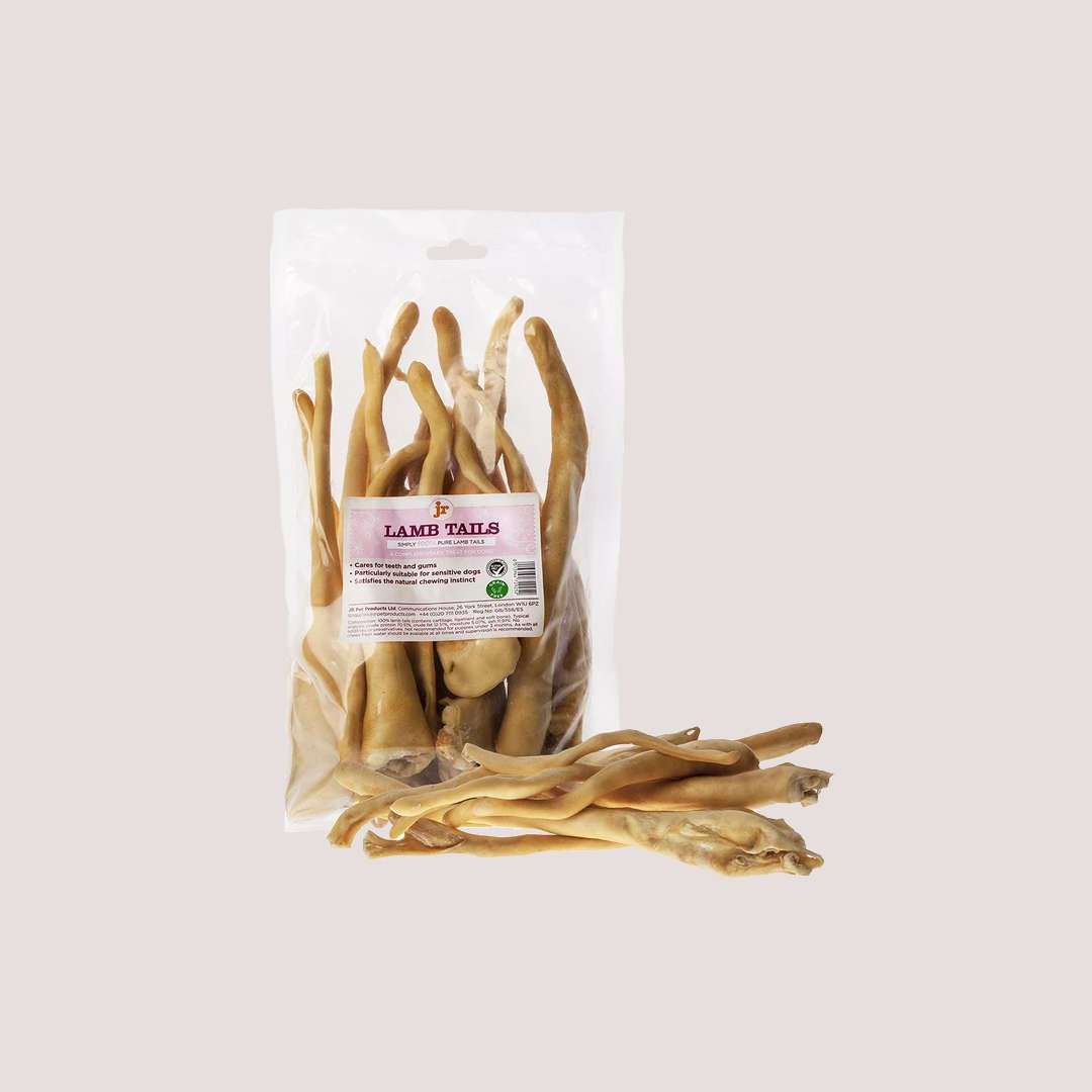 JR Lamb Tails are wholesome, long-lasting chews made from 100% natural lamb. High in protein and low in fat, they’re a delicious and healthy treat that supports muscle repair, joint mobility, and dental hygiene. Rich in collagen, glucosamine, and chondroitin, they promote healthy skin, a glossy coat, and strong joints.These responsibly sourced treats are naturally air-dried to preserve their flavour and nutritional value. Free from additives, preservatives, grains, and gluten, JR Lamb Tails are a safe, hypoallergenic option for dogs with sensitivities. Suitable for puppies from 12 weeks, they provide a satisfying chew that also encourages relaxation and mental well-being.