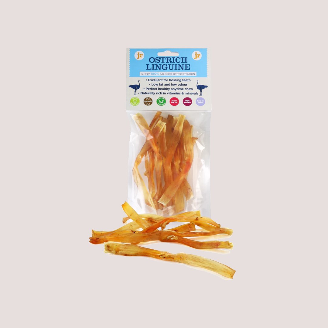 Grain-free and free from artificial additives, JR Ostrich Linguini is a wholesome treat you can feel good about giving to your pet. Its lightweight, easy-to-serve strips make it ideal for training, rewarding, or simply indulging your furry friend with a healthy snack.