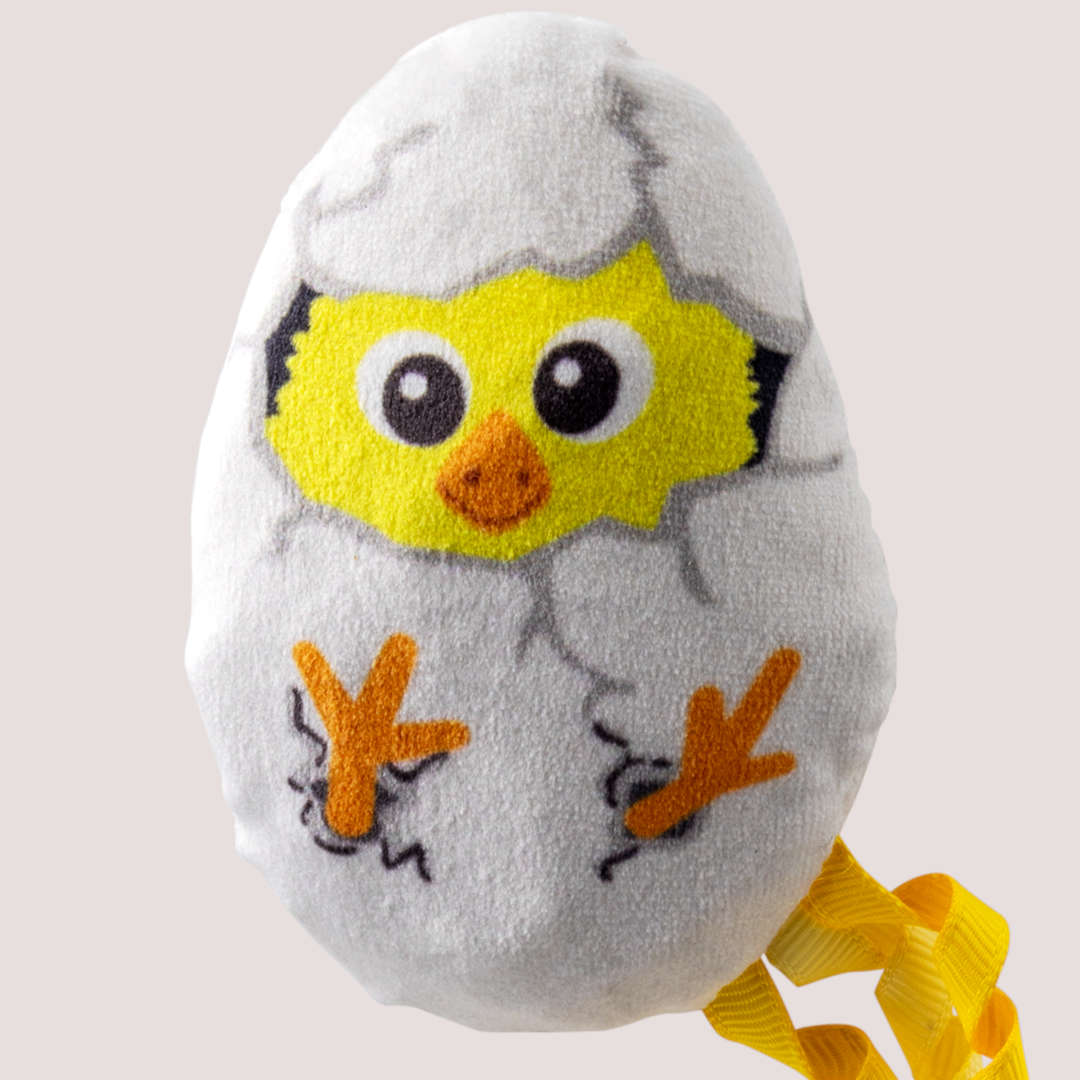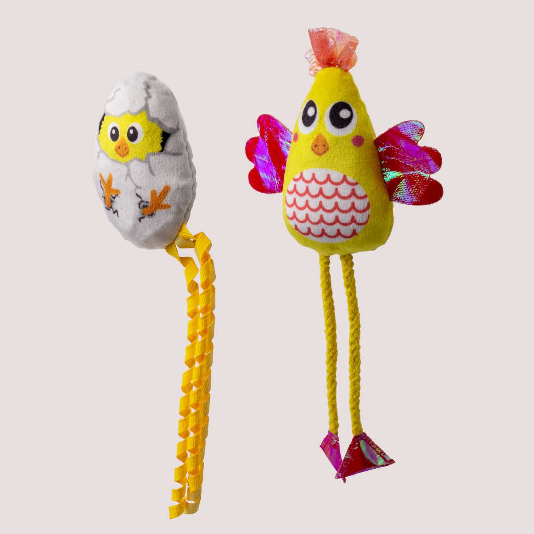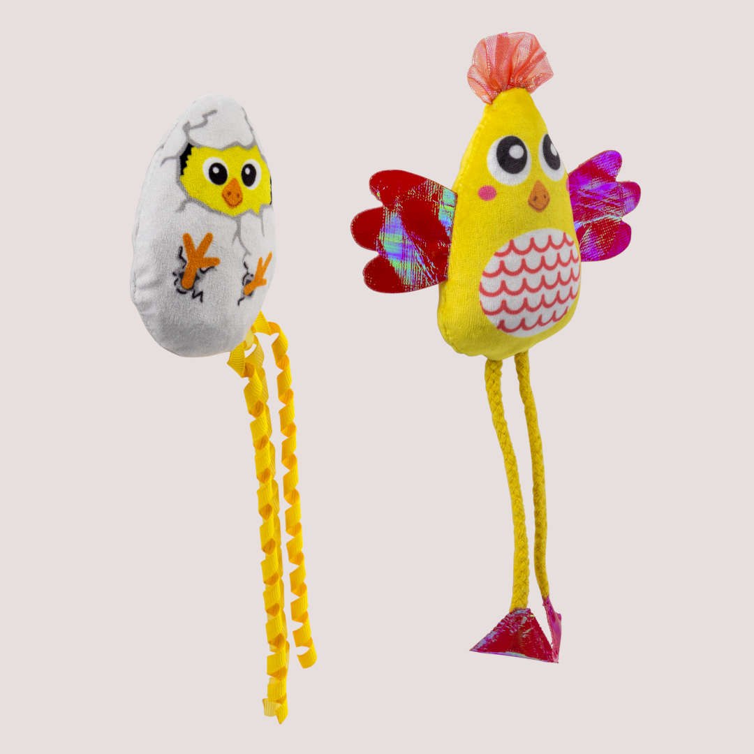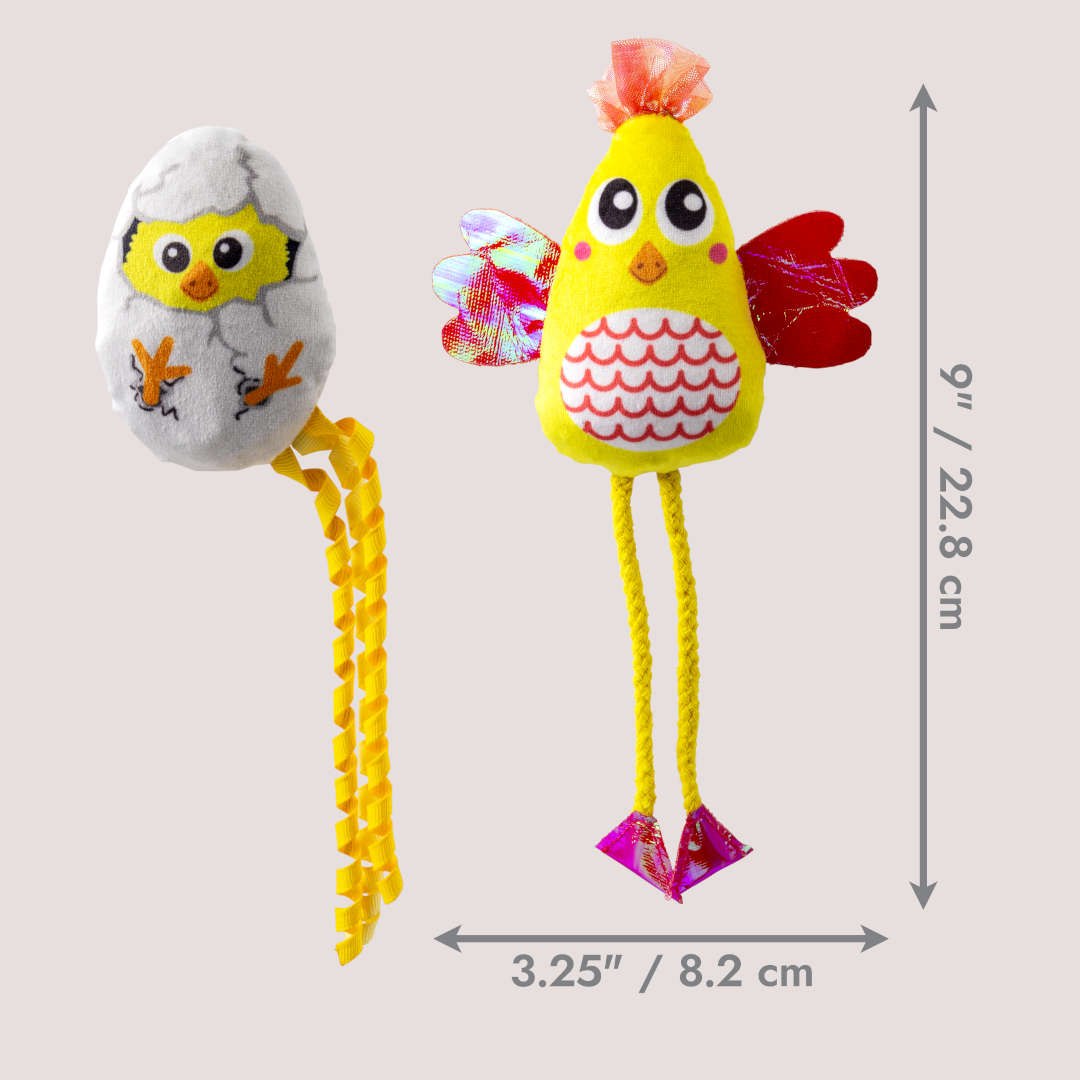 • Soft plush chicken toy designed for cats