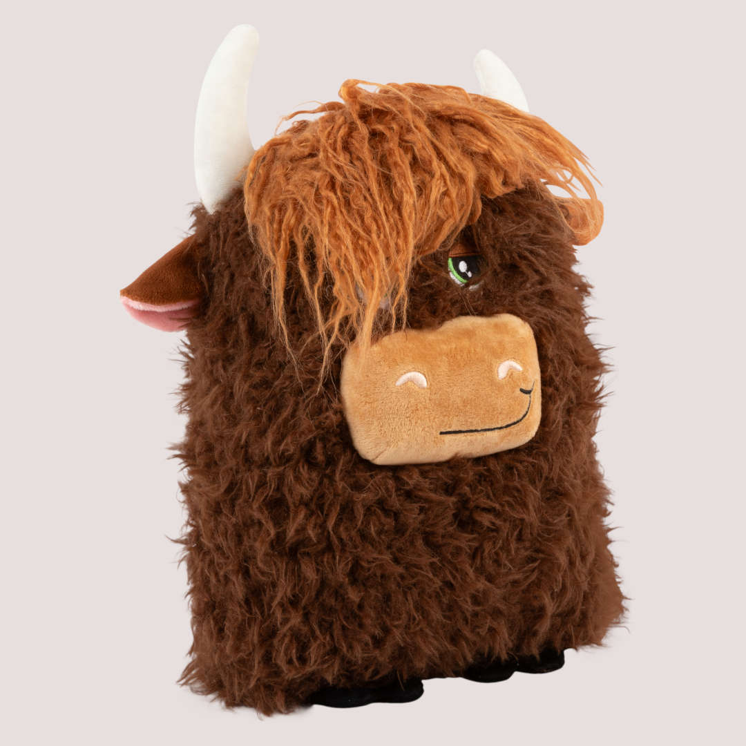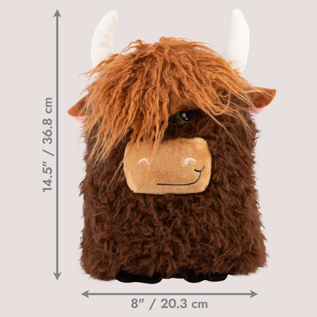 The KONG Comfort Highland Cow Jumbo is made for dogs who love to cuddle as much as they love to play. With its extra-large size and ultra-soft plush material, this toy is ideal for snuggling during rest time or carrying around the house.