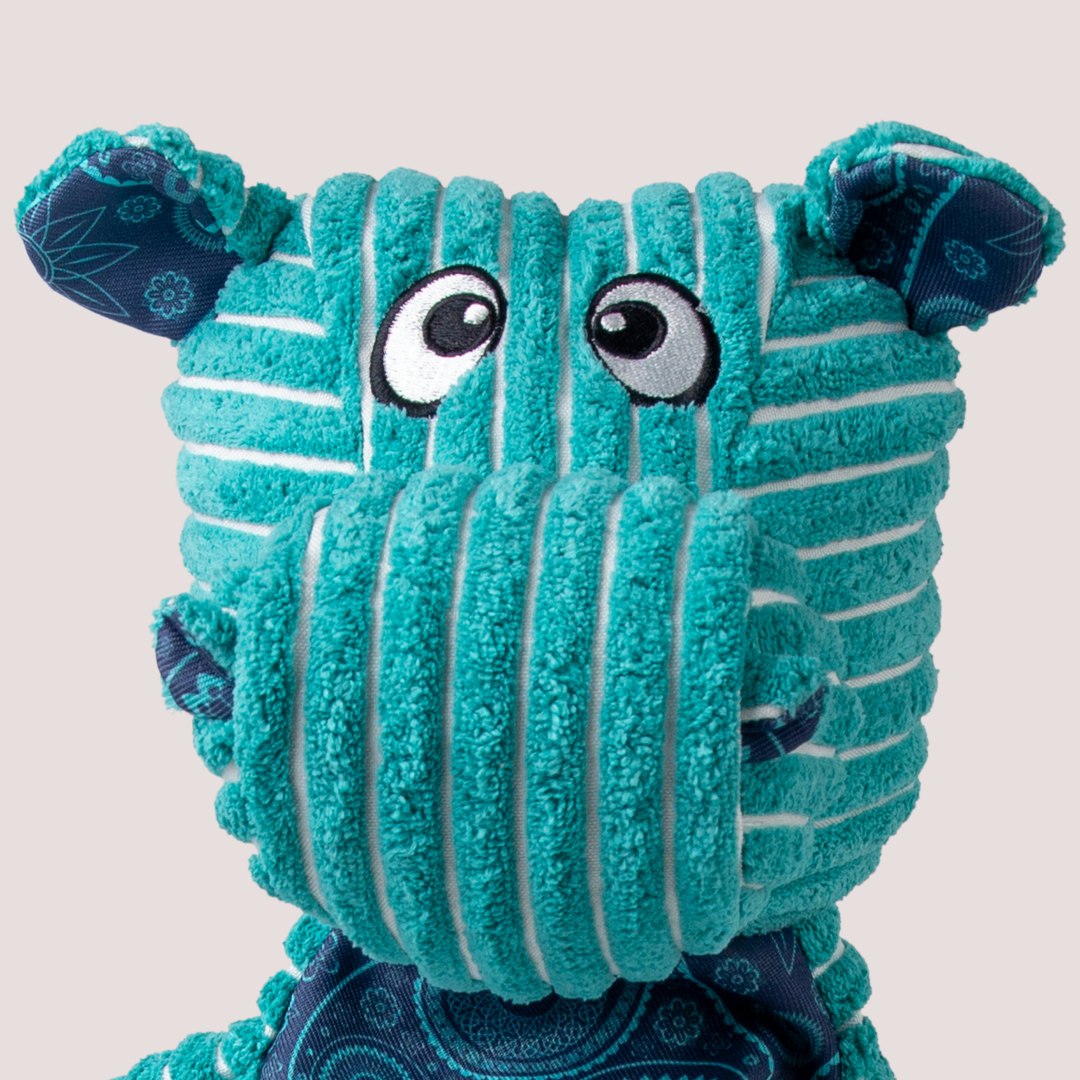 Designed with two squeakers to extend playtime and a variety of textures to keep things interesting, the Floppy Knots Hippo delivers both stimulation and snuggly comfort. Its soft exterior invites cuddles after play, while minimal stuffing ensures there’s less mess when play gets rough.