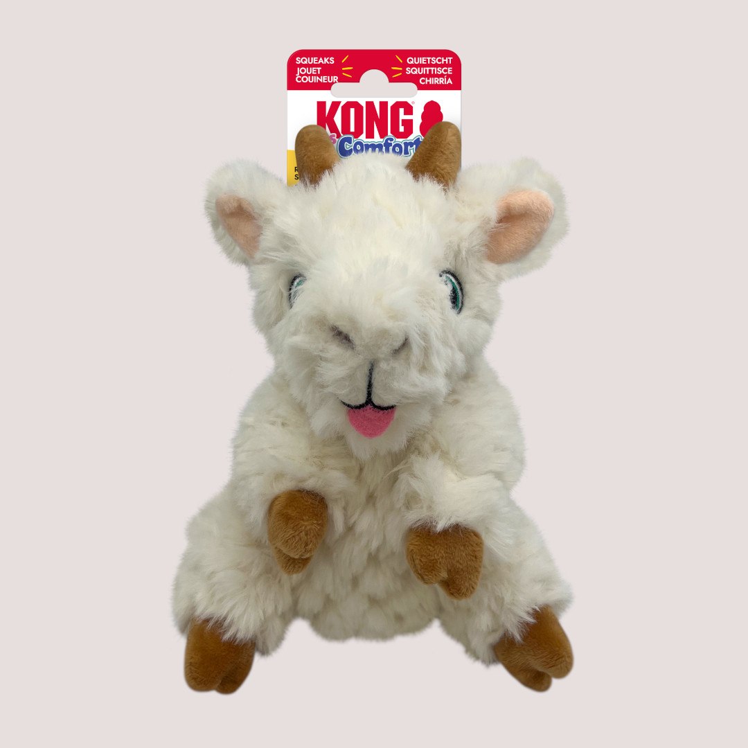 Ideal for indoor games or quiet bonding moments, the KONG Tykes Goat is part of a range tailored to meet the enrichment needs of gentle chewers. As with all plush toys, supervision is recommended to ensure safe use.