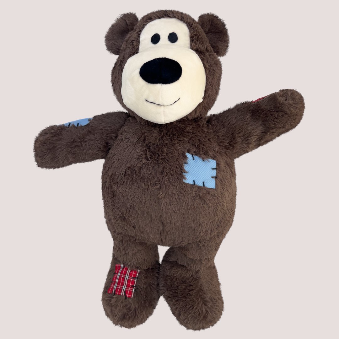 • Oversized plush bear with a knotted rope skeleton for natural play