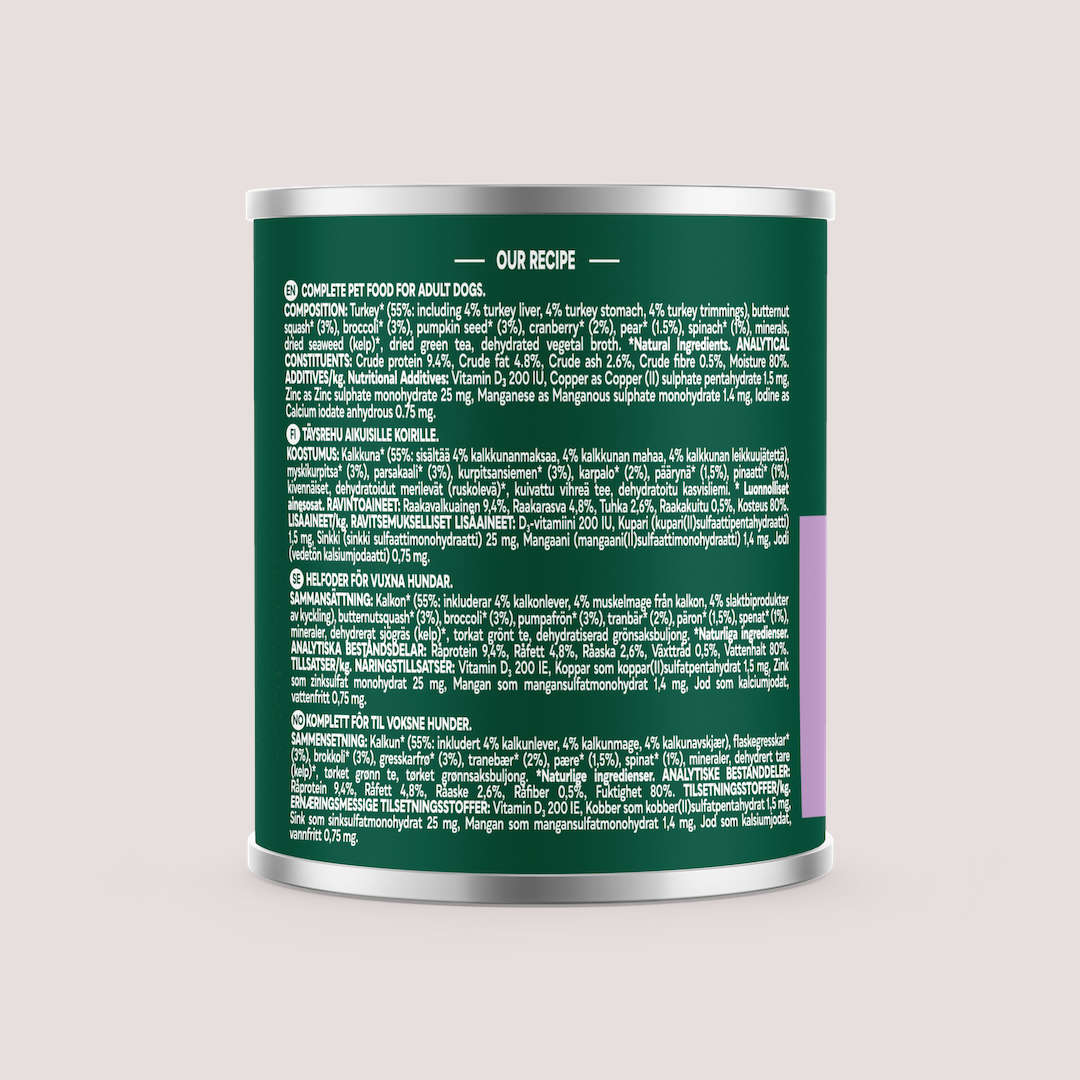Natures Menu Turkey With Superfoods is a single-protein and grain-free, made with human-grade quality ingredients.