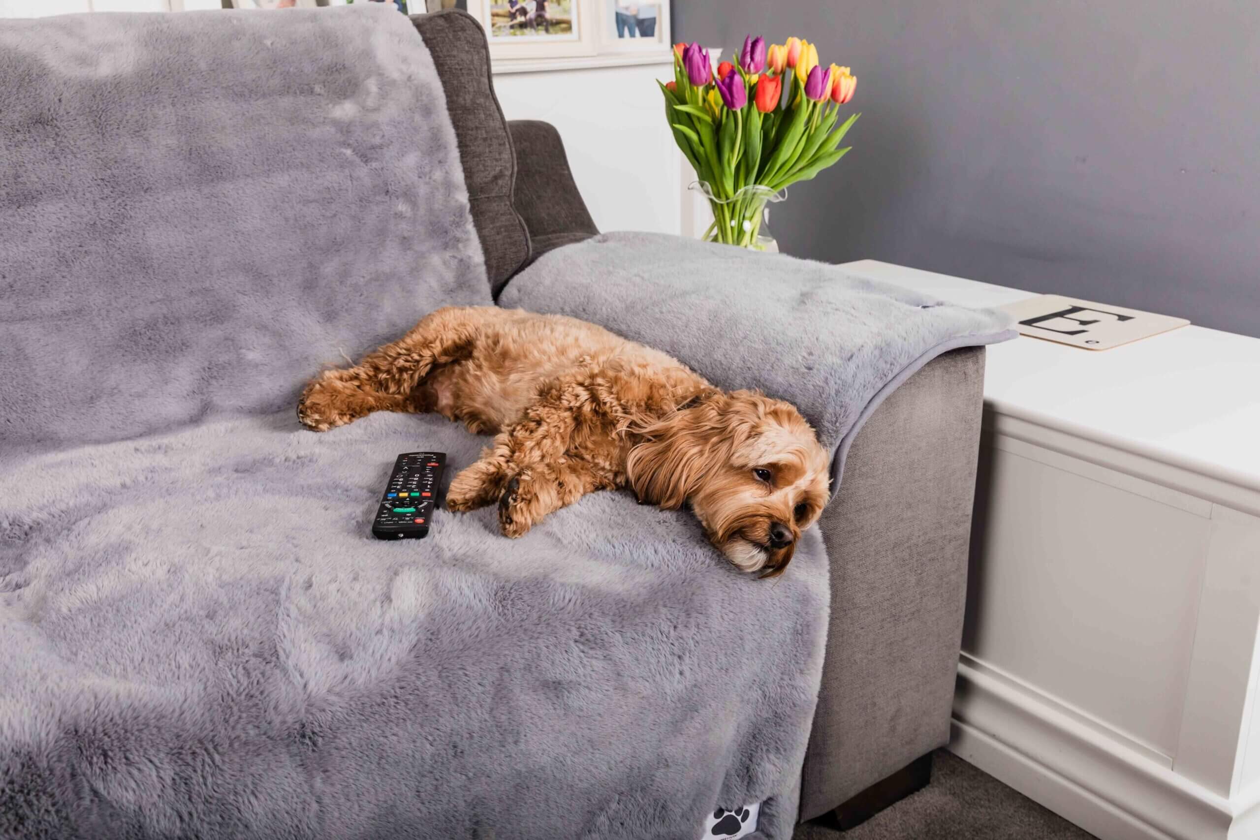 Pet Rebellion Comfy Cover non-slip backing helps to keep the cover in place when the dog gets on or moves around ensuring it doesn’t slip down like a traditional blanket. The extra-long length then helps to keep it in position.