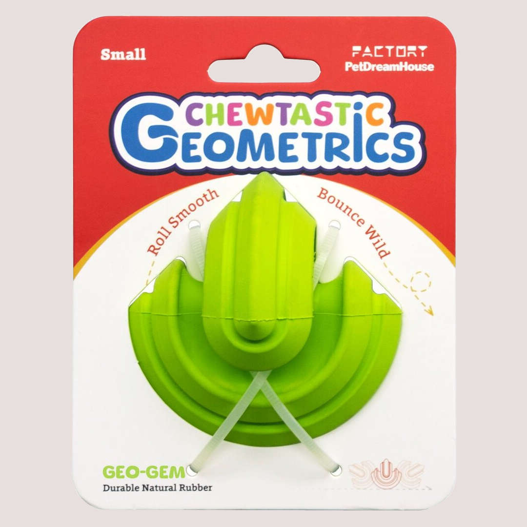 Petdreamhouse Chewtastic Geometrics Geo-Gem is a thoughtfully designed, multifunctional toy crafted to challenge, entertain, and reward your dog. Whether your companion loves chasing, chewing, or problem-solving, this toy delivers dynamic fun in every bounce.
