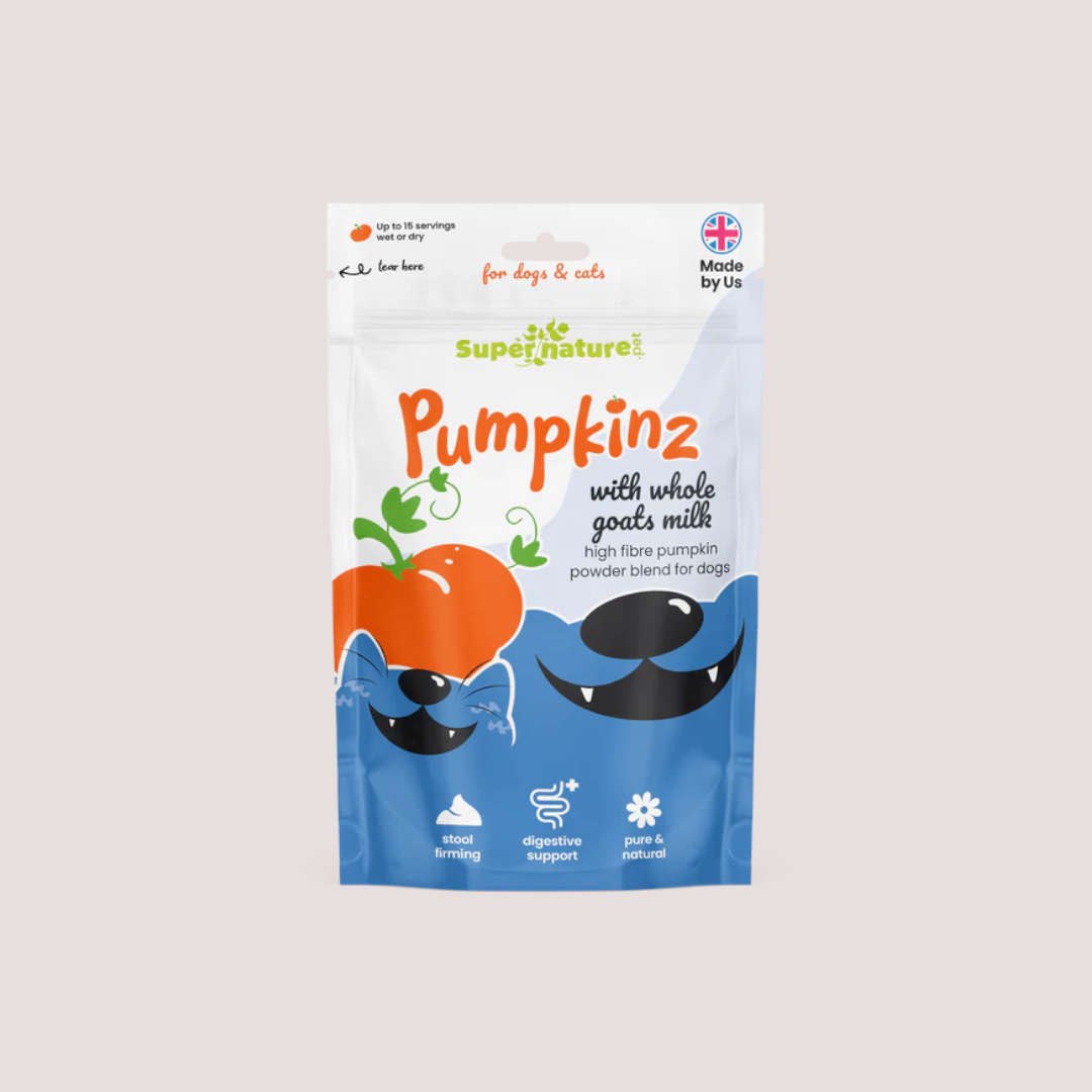 Pumpkinz Pumpkin Powder with Goat’s Milk combines the digestive benefits of pumpkin with the nourishing properties of full-fat goat’s milk. Pumpkin is naturally high in fibre, helping to support healthy digestion and gut balance, while goat’s milk adds gentle proteins and fats that are easy to digest and highly palatable.