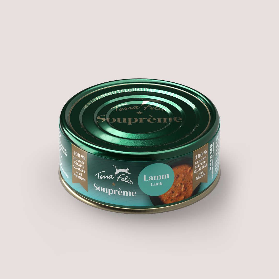 Broth 56%, lamb heart 33%, beef liver 5%, glycine 2%, oyster shell 1%*, taurine, tomato powder*, spinach*, pear-apple extract, brewer’s yeast*, fish oil, minerals* (*dried).