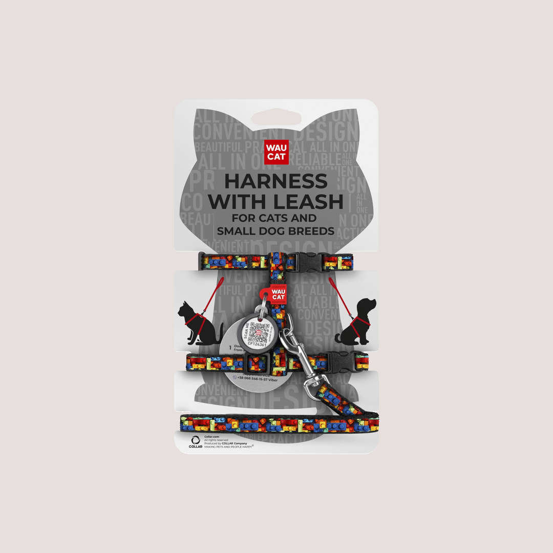 The Waucat Small Harness & Lead Blocks set offers a stylish and practical solution for everyday walks. Featuring a block pattern, this set is perfect for cats and small puppies who enjoy exploring safely and comfortably.