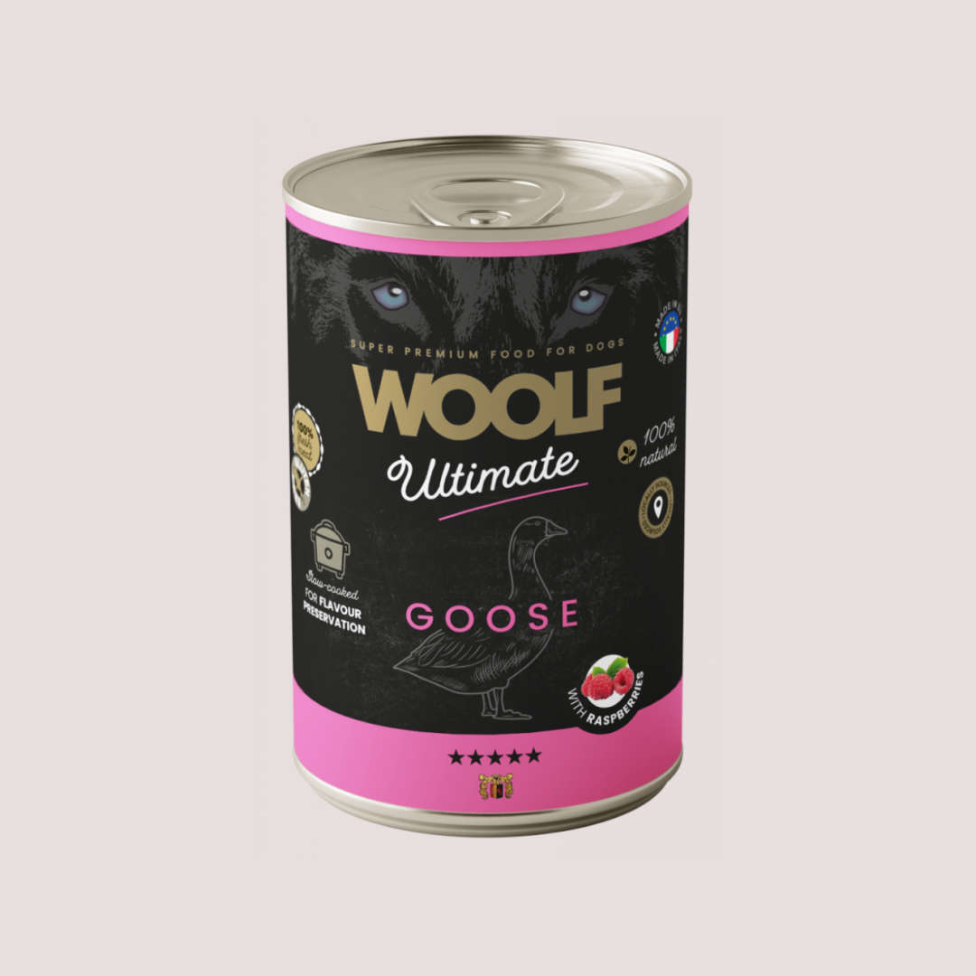 Woolf Ultimate Goose With Raspberry Dog Wet Food is a premium wet food crafted using a simple, high-meat recipe designed to support your dog’s overall health and wellbeing. Made with goose, this single-protein formula is ideal for dogs with sensitivities or those who benefit from a limited-ingredient diet.