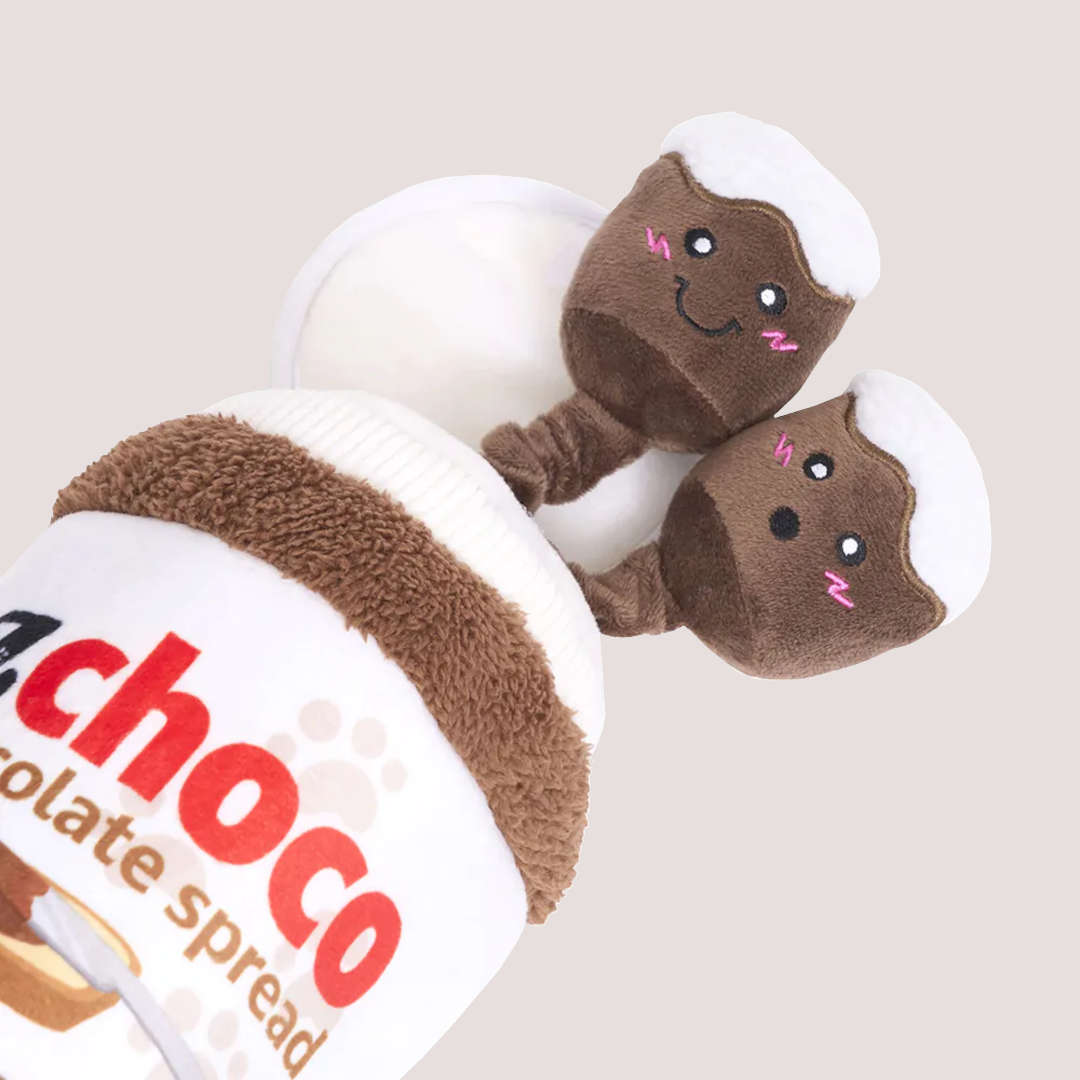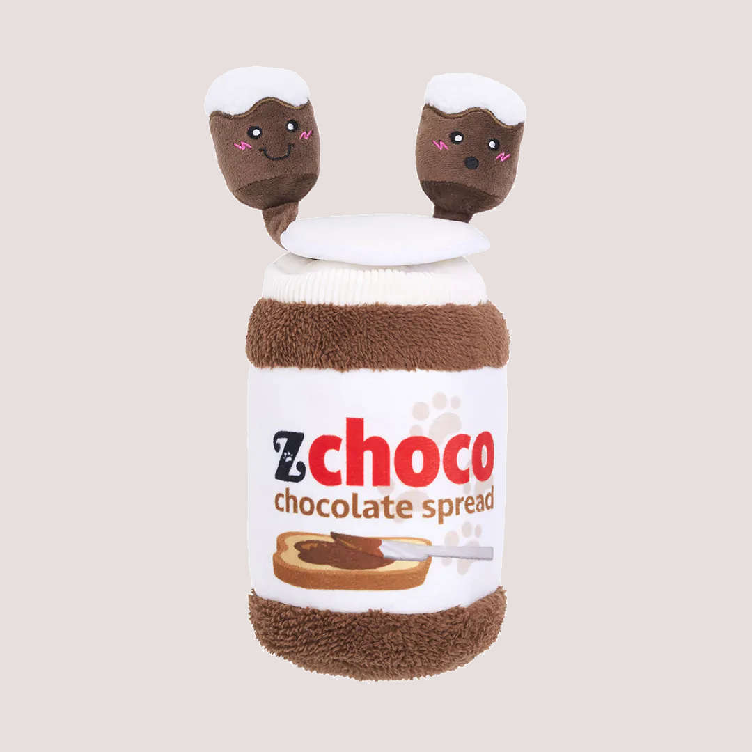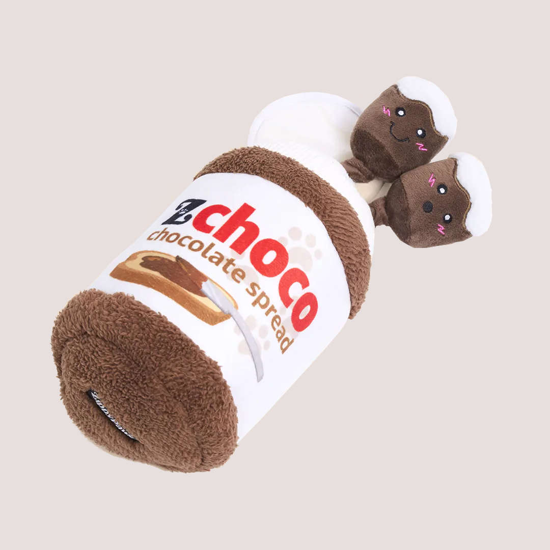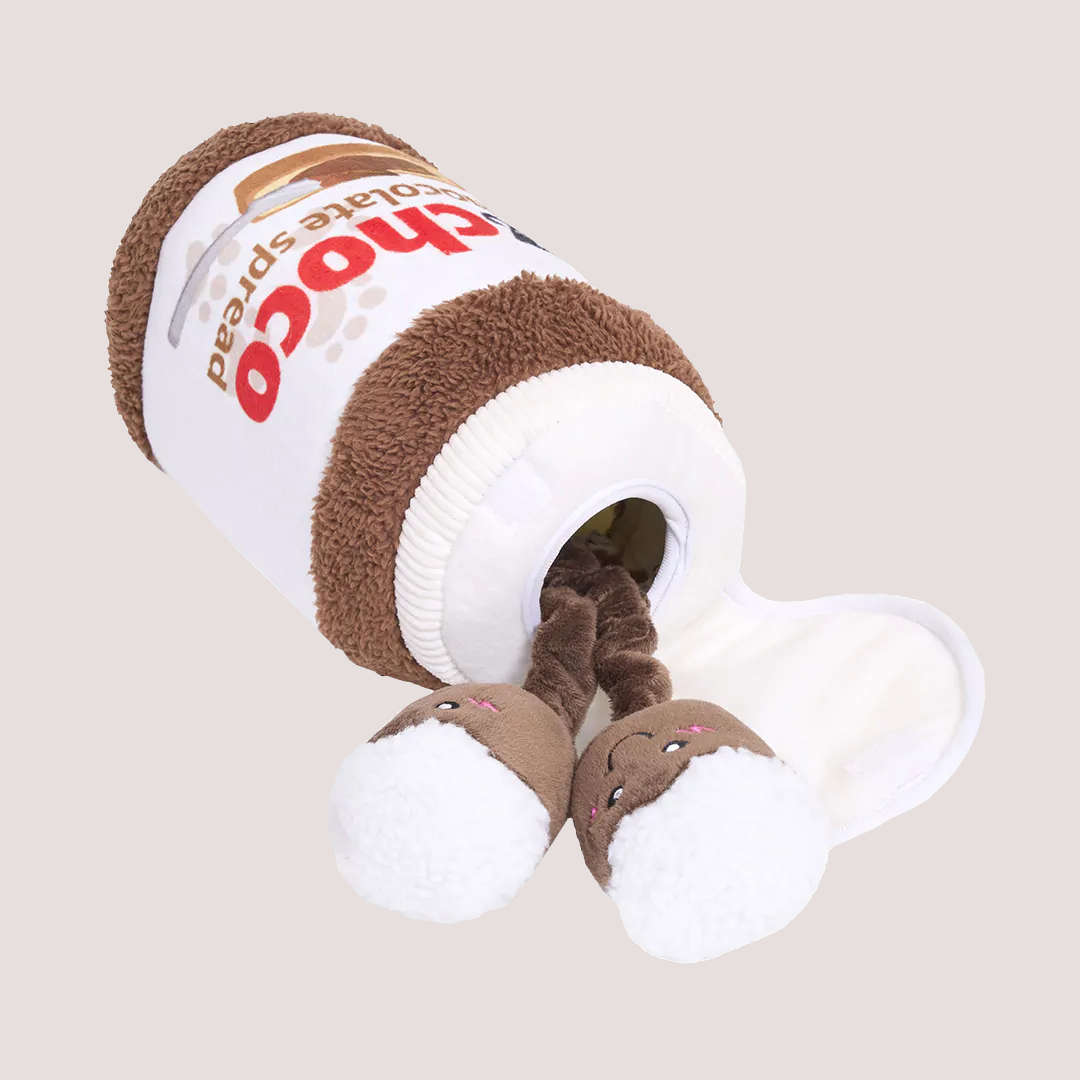 The ZippyPaws Bungee Burrow Chocolate Spread Jar transforms everyday play into an enriching puzzle experience. Dogs are encouraged to use their nose and paws to locate and pull the hidden toys from inside the plush jar, satisfying their natural foraging and hunting instincts.