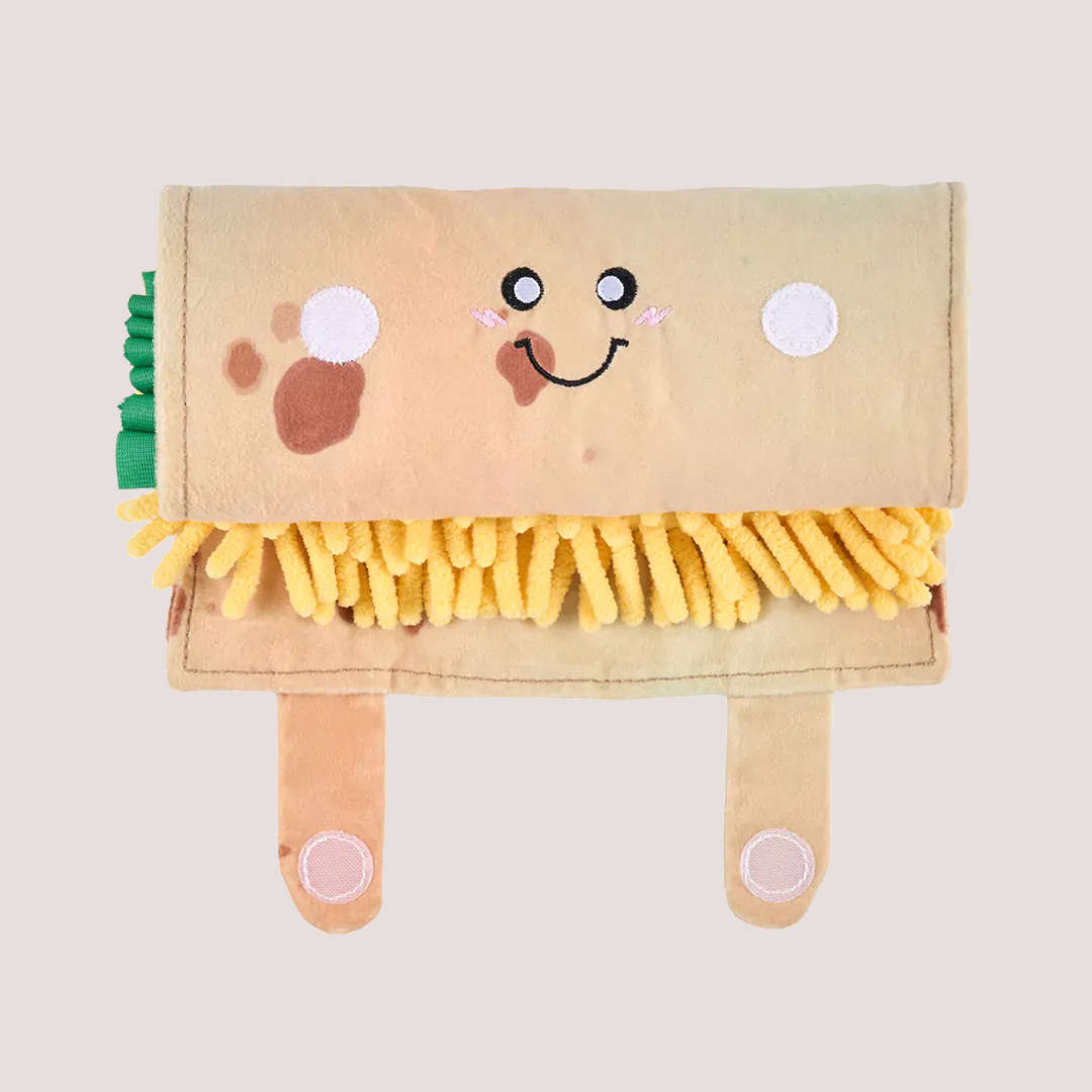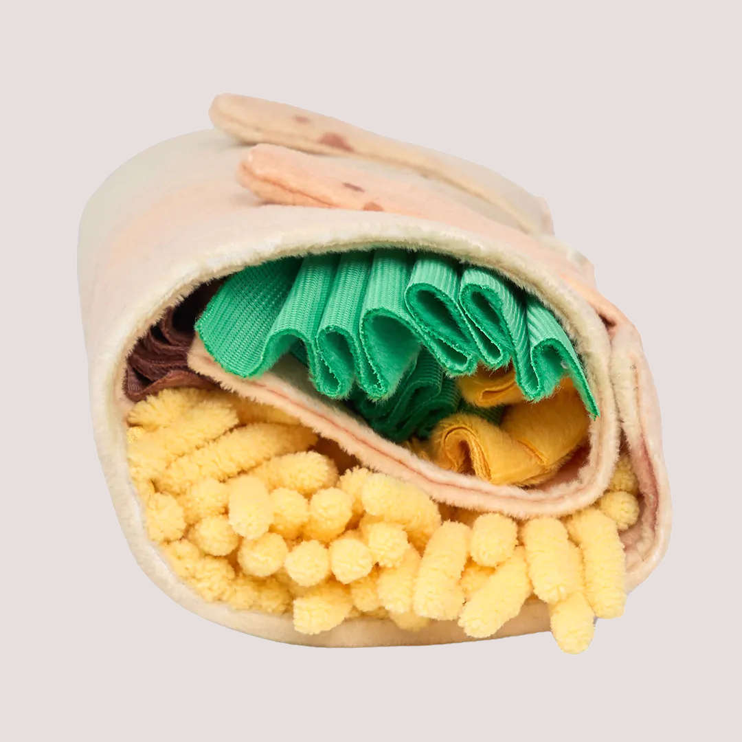 Crafted from soft, durable materials, this toy is gentle on teeth and gums while providing plenty of enrichment for curious dogs. The burrito roll adds an extra layer of challenge, helping keep pups entertained and engaged during playtime.
